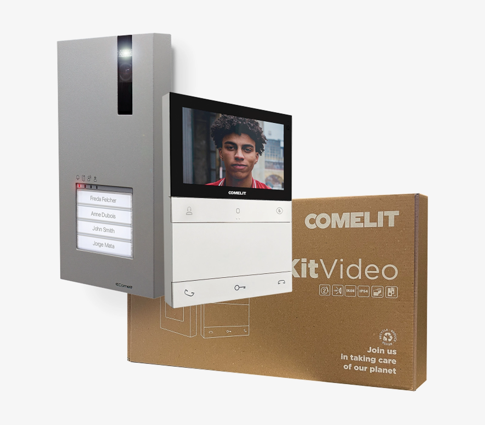 De Comelit CR7461 Intercom Kit Chronos met 1 monitor is een compleet video intercom systeem met één buitenpost en één deurbel. Bij dit intercom systeem wordt 1 binnenpost meegeleverd. De groothoekcamera toont altijd duidelijk wie er aanbelt en dankzij de nachtweergave blijft het beeld ook in het donker helder. De kleurenschermen reageren direct en bieden de mogelijkheid om de deur elektrisch te openen. De installatie blijft eenvoudig door het gebruik van tweedraadsbekabeling en het systeem werkt zonder abonnement. Het systeem combineert betrouwbaarheid en gebruiksgemak met een professioneel en strak ontwerp.